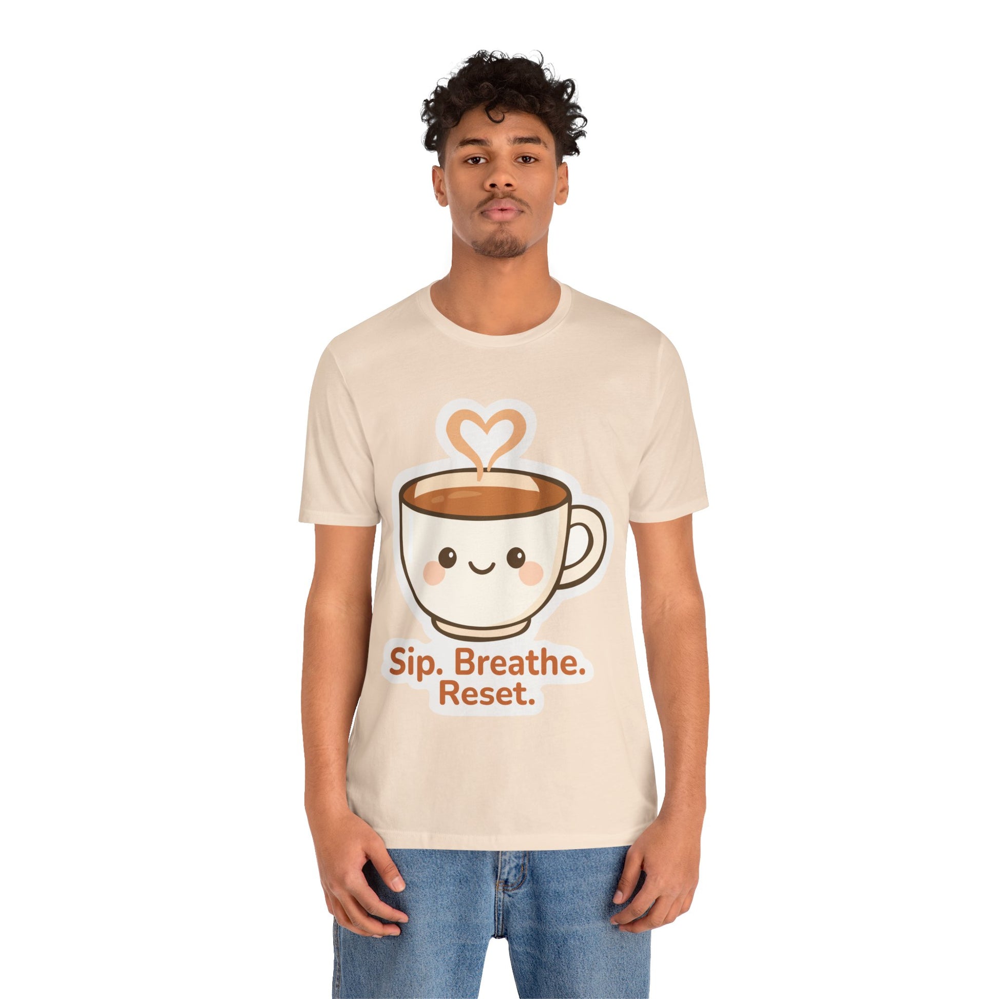 Sip, Breathe, Reset T-Shirt — Cute Coffee Cup Relaxation Tee